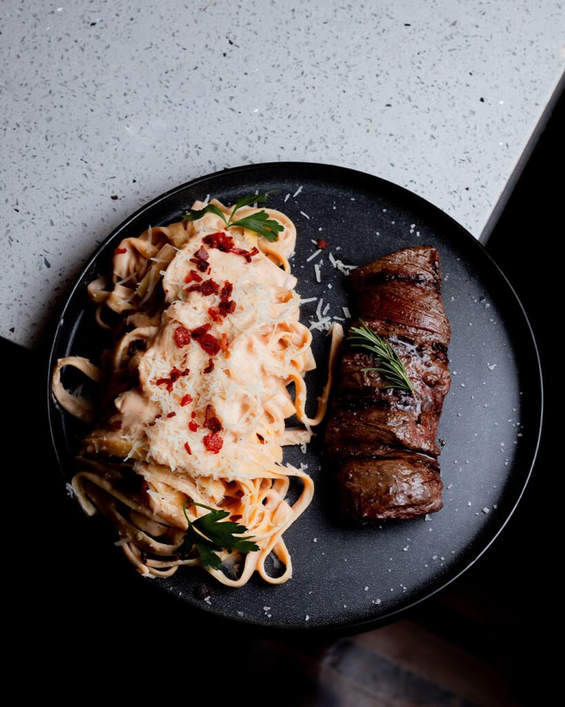 FETUCCINI AL PESTO CON MEDALLO DE LOMO PREMIUM