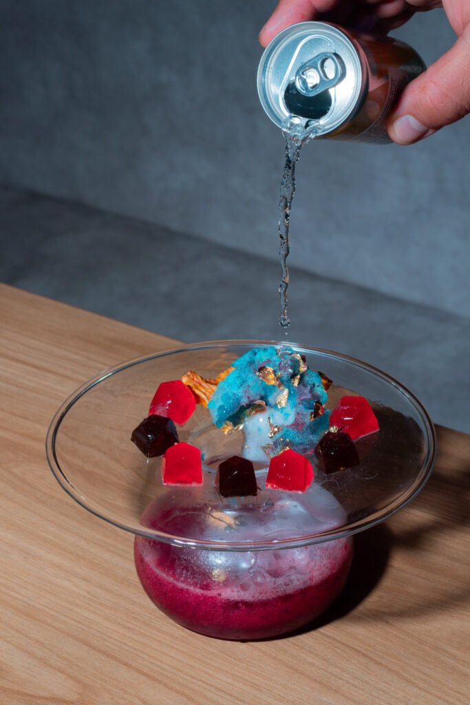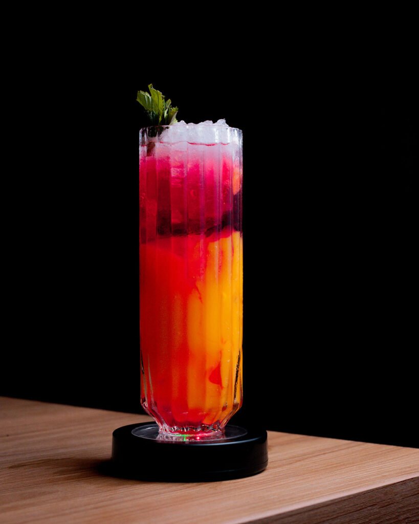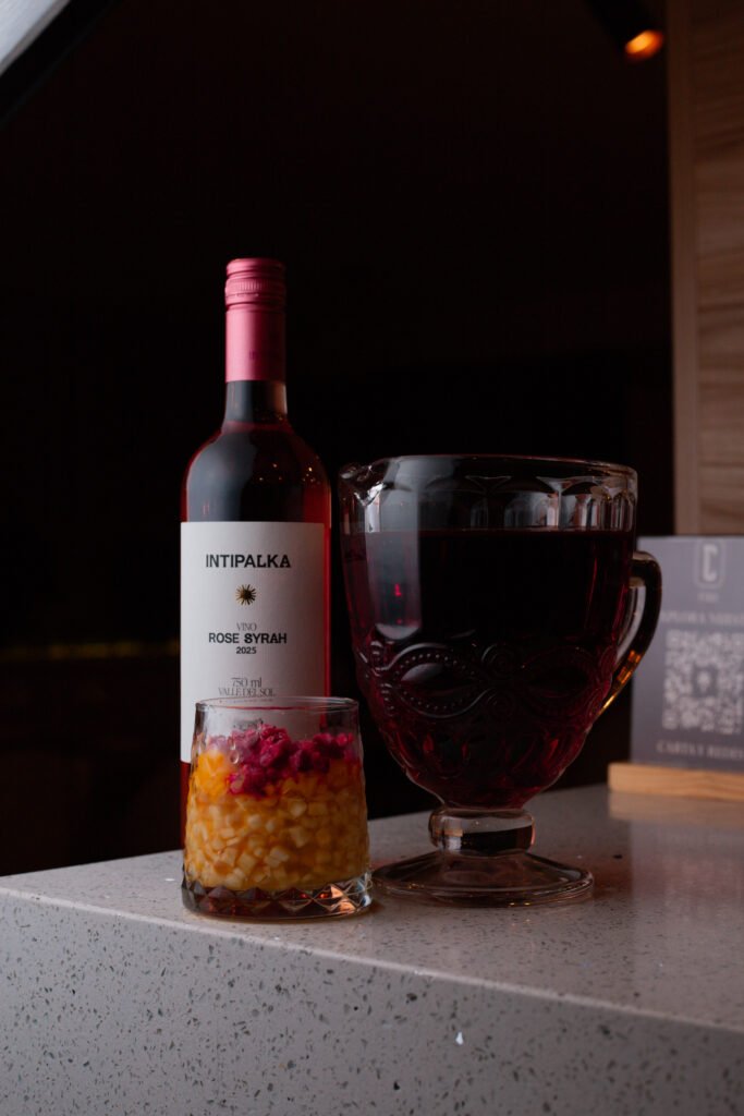 CORDIAL DE FRAMBUESA, VINO ROSE INTIPALKA, RON CARTAVIO SOLERA, VODKA SMIRNOFF, GIN TANQUERAY LONDON DRY, GINGER ALE, FRUTA AFRODISÍACA PICADA