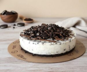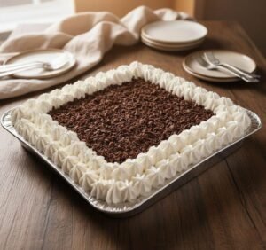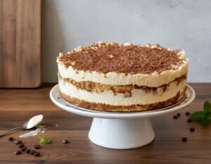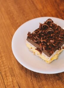 Pastel con capas pudín de chocolate y vainilla, con galleta de vainilla