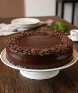 Keke de chocolate, relleno y bañado con fudge de chocolate