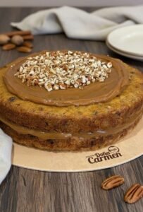 Keke hecho a base de zanahoria, frutos secas y relleno de manjar de olla