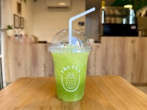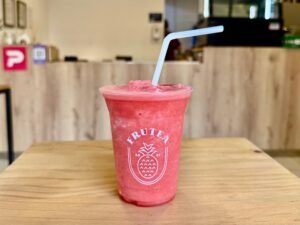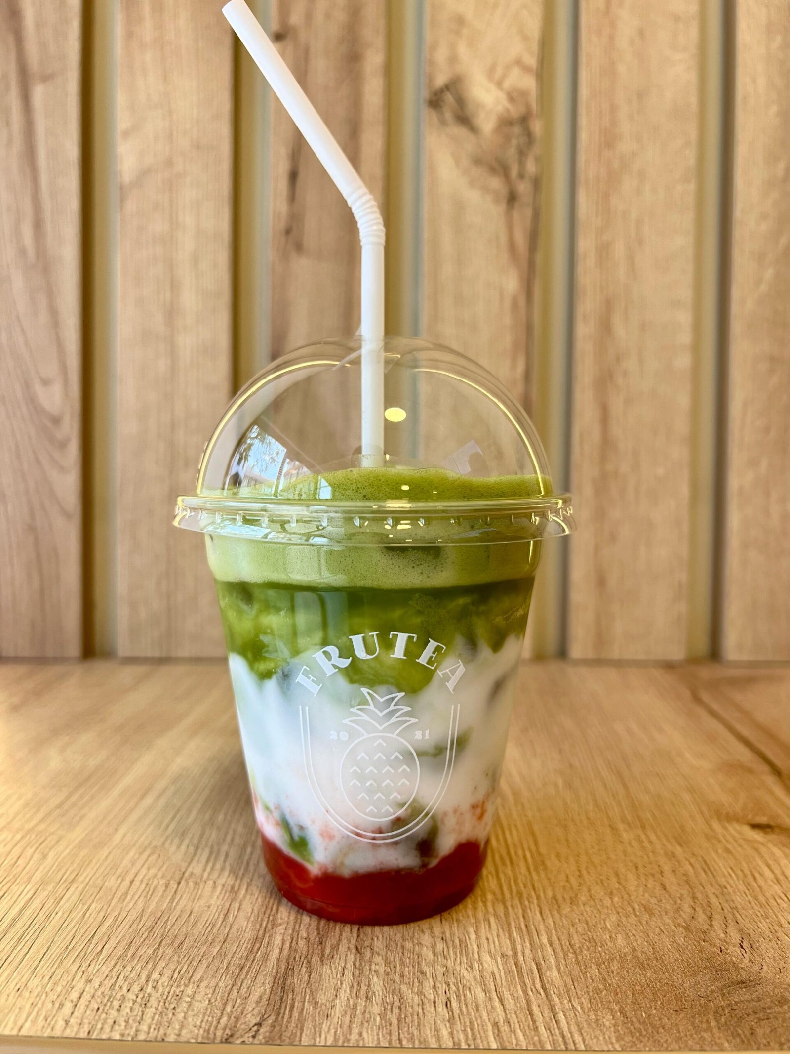 Matcha de grado ceremonial, mermelada de fresas, vainilla, leche sin lactosa, canela en polvo, hielo y stevia. (Cambia por bebida vegetal +4.00)