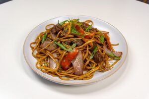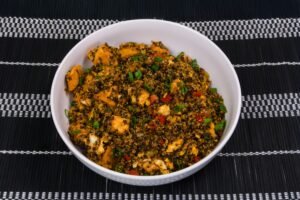 Una deliciosa fusión de la cocina oriental con el toque andino. preparado con quinua, verduras frescas, pechuga de pollo en trozos y un ligero sazonado natural, es una opción nutritiva, ligera y llena de sabor.