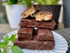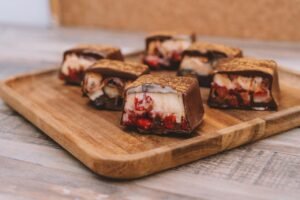 Fruto de nuestra creatividad; nuestros Yogurt Bites son unas barras heladas de chocolate rellenas de yogurt griego artesanal, mantequilla de maní, frutos rojos y con un toque de canela en polvo. ¡Son una bomba!