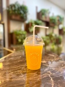 Bebida de la casa naranja, hierba luisa y maracuyá