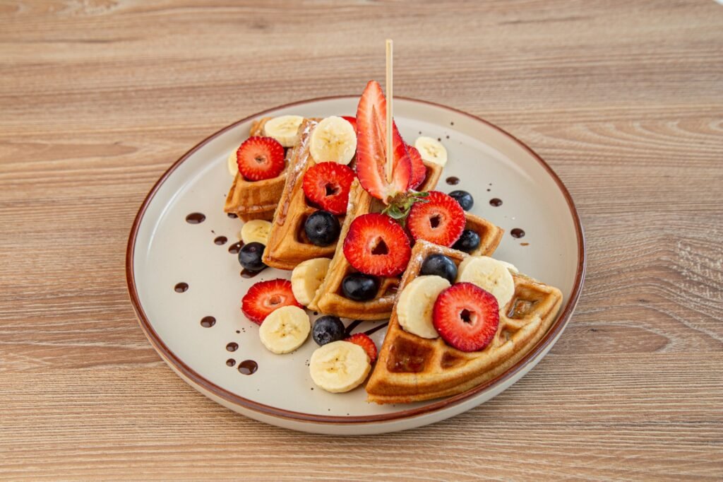 Puedes acompañarlo a escoger con miel de maple, miel de abeja, mermelada, frutas, jarabes de sabores.